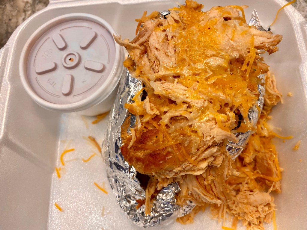 We thought we should get some carbs, so we order the BBQ chicken stuffed potato.