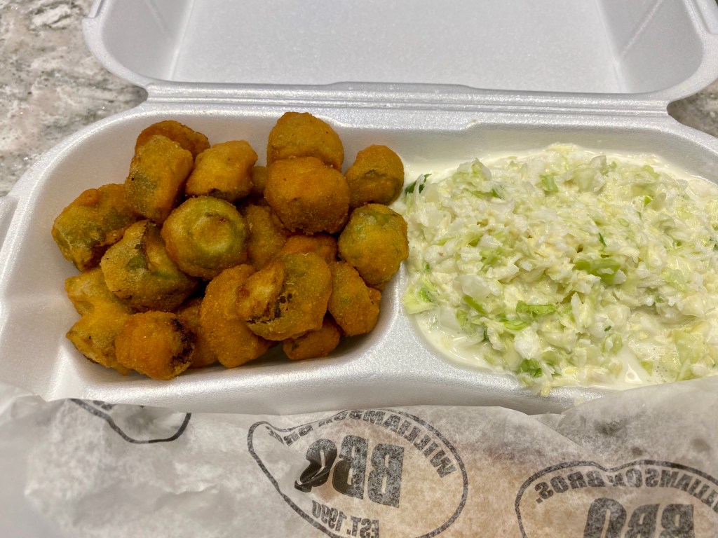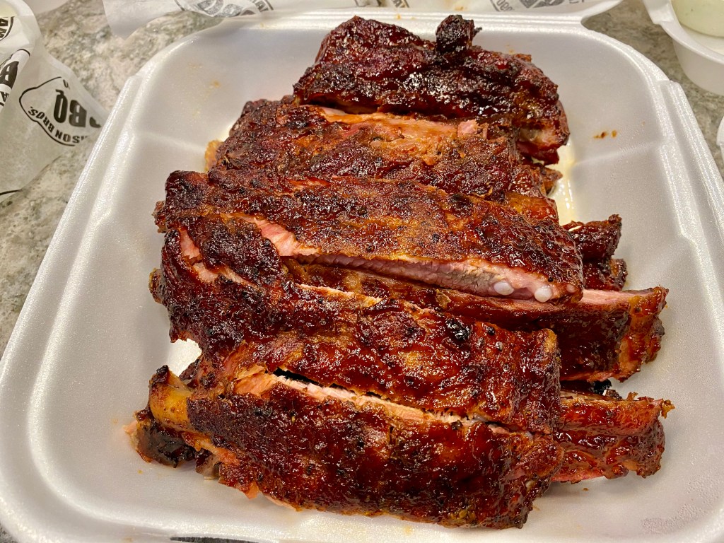 Meanwhile, back at the takeout counter, sometimes you just gotta have ribs. And that’s exactly what we ordered from Williamson Bros. BBQ for a recent pickup. I called on the phone, gave the credit card info and was told ten minutes. After a two-mile drive, I was in the pickup line and told to pull into parking space number 3 (out of 8 full spaces) and they would bring the food out. Twenty minutes later, no food. Finally, I asked where the food was, and it miraculously appeared. You would think they would have this down as they have been doing it for months.