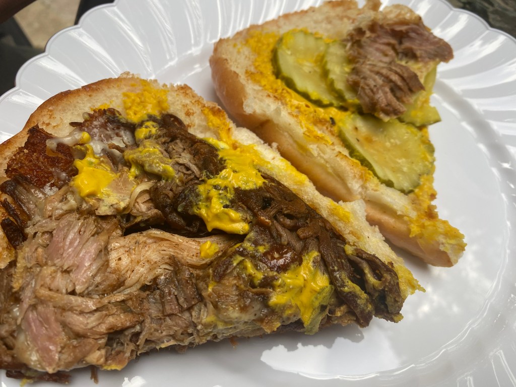 They use barbecue brisket and pork in their Cuban. Then they top it with cheese and pickles. We held the onion. This is half of the sandwich. Unless you are starving, you should probably share with your date. You are looking at heaven between bread. It’s a fantastic sandwich and a must-order if you go.