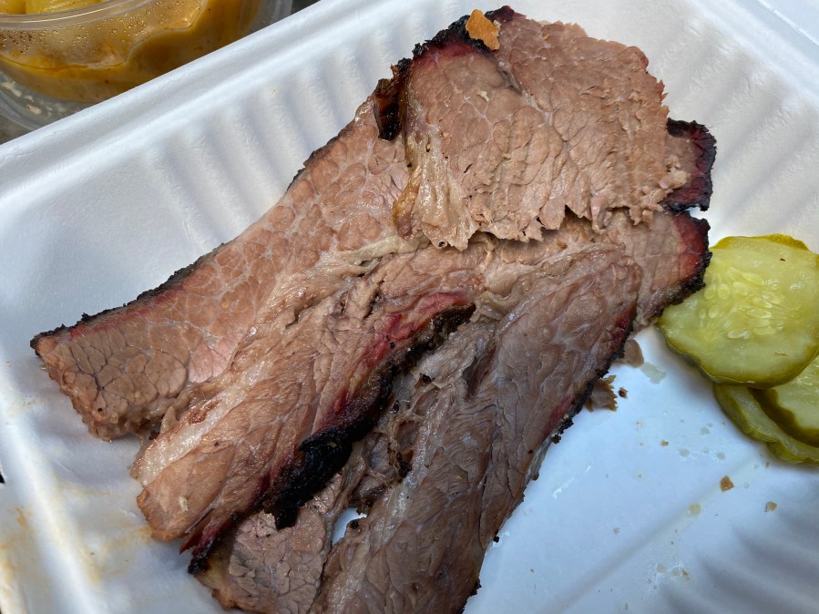 Speaking of perfect, the one I got was close to it. You can see the smoke ring that is left by their huge smokers. This is barbecue nirvana.