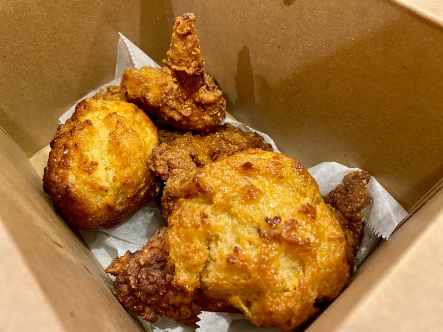 We are sure their other offerings are as good as this chicken, but this is amazing fried chicken. All fried chicken should be this good. For $25, you can feed two people and have leftovers. The chicken comes with two honey biscuits, mashed potatoes, and collard greens. Because Spring is normally an expensive, fancy restaurant that you visit on special occasions, we get out our good plates for the meal.