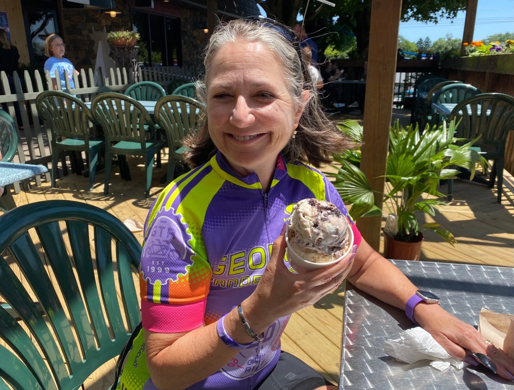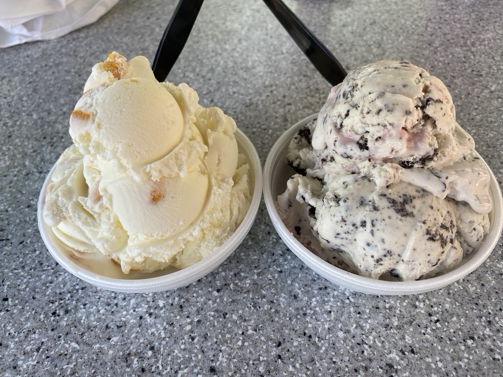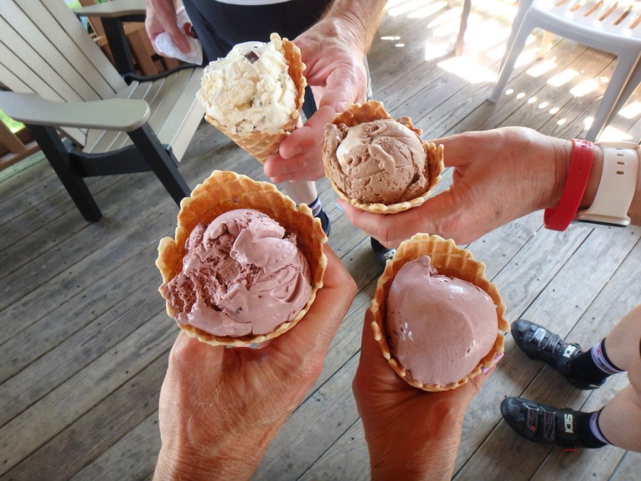 Mitzi and John have joined us on the trip, which means you get to see even more flavors of iced treats. While riding near the Oregon Dairy Farm, we enjoyed an after-lunch dessert.