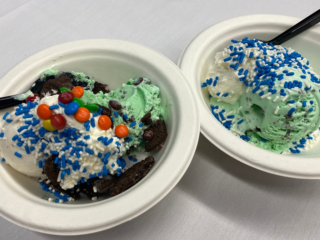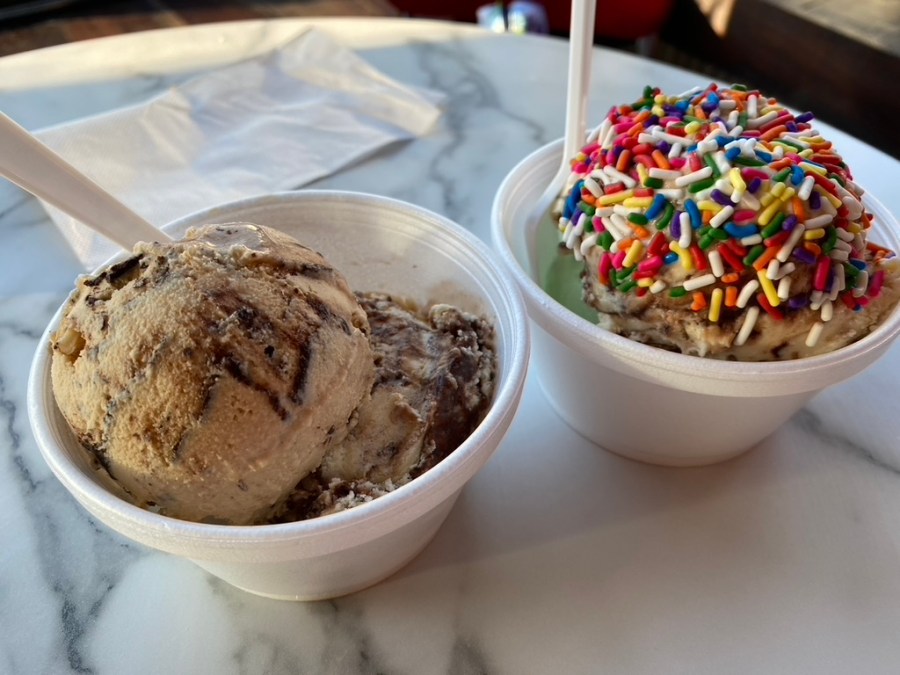 That’s Peachy Paterno on the left and Arboretum Breeze (mint, chocolate, and a raspberry swirl) on the right. The next day, we were back for more.