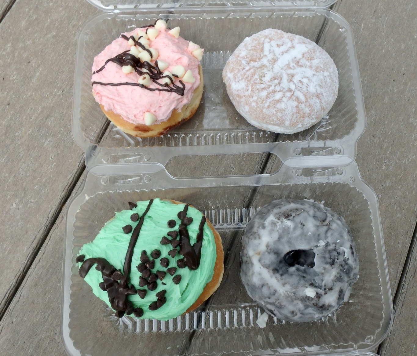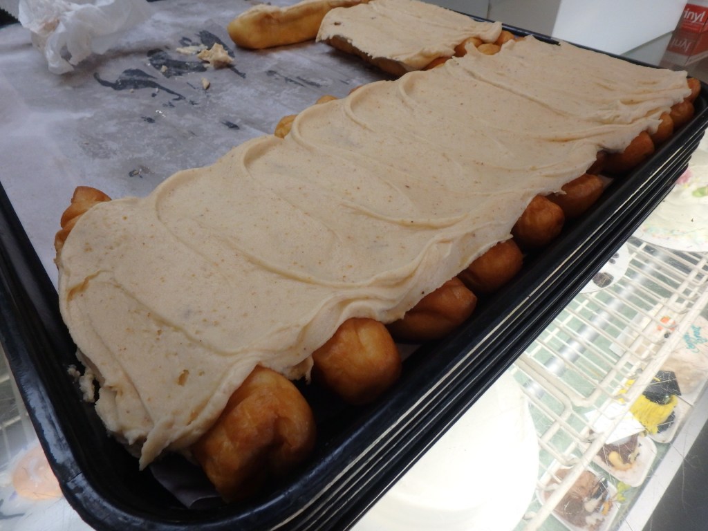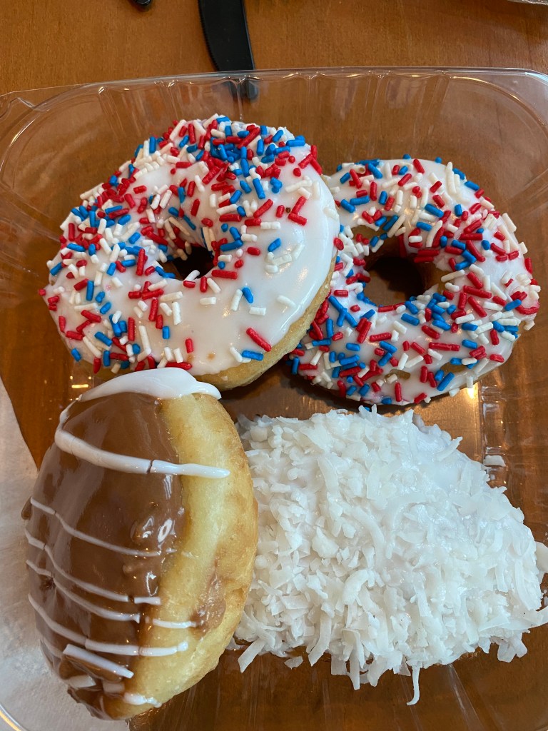 They are cream-filled and topped with maple, vanilla, or chocolate icing. One more shot of donuts, from Beiler’s in Lancaster before we get back to ice cream.